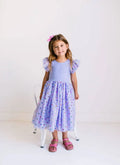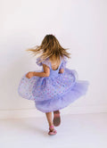 The Olivia Dress by Ollie Jay is designed for twirling through parties, backyard fun, and everyday adventures. A new spin on the bestselling confetti style, with an upgraded summer sleeve style, longer tulle and the same fun yet sweet look we all love!