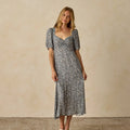 Our flattering Violet Dress is made for life’s special moments, with elegant above-elbow sleeves, soft gathering at the bodice, and princess seams that flow into a subtle A-line silhouette.