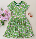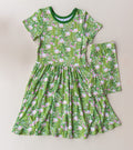 This Bamboo Short Sleeve Twirl Dress Set comes in a green botanical print with matching shorts to wear underneath! This super soft and stretchy pair is sure to become a favorite for everyday wear. Made from premium bamboo, this dress offers a natural and soft feel for the ultimate twirl experience.