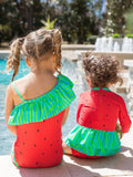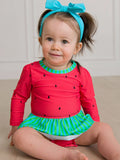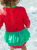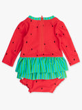 Long Sleeve Skirted One Piece Rash Guard Swimsuit - Watermelon