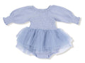 Long Sleeve Smocked Bubble with Tutu - Soft Chambray