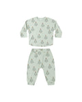 This comfortable cotton jersey set includes a relaxed long sleeve crewneck tee and dropped-crotch slouch pants. Shoulder snaps included on sizes 0–3M - 6–12M for easy changes.