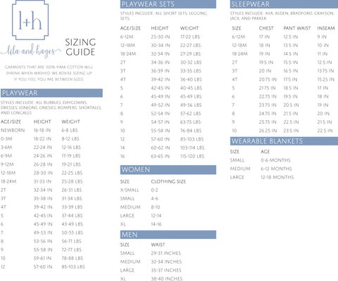 Due to the nature of Pima cotton, items will shrink upon first washing. In order to ensure the softest and longest life for your Lila and Hayes pieces, please follow our care instructions.