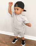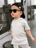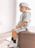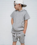 You're going to love our Short Sleeve Hoodie. It's the perfect mix of streetwear style + classic Core comfort for playtime, anytime. Pair it with our Harem Short for the coolest warm weather look. * Color: Grey * Hood * Functional kangaroo pocket * High/low, ribbed bottom hem * Side slits for layering + non-restricted movement * Signature "Little Bipsy" side tag Material + Wash: * 95% cotton | 5% spandex * Machine wash with like colors on cold * Dry on low heat * Do not bleach * May experience slight shrinkage on first wash Sizing + Fit: * True to size * If in doubt or prefer a roomier fit, we recommend sizing up * Please check the size guide before ordering