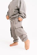 Our Pebble Gray Waffle Cargo Set from Little One Shop is a trendy and unique addition to any child's wardrobe. This top and pant set offers a modern and comfortable look, designed with affordability in mind.