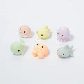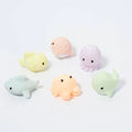 PVC. Set of 6 squirters designed for splash play. Floats on water. Does not contain any small parts.