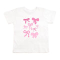 The Coquette Bow Doodle Short Sleeve T-Shirt is a cute and trendy t-shirt for kids inspired by the latest bow trend!