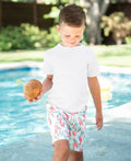 He'll be ready for the backyard or beach in this comfy short sleeve rashguard. Made from a high-quality swimwear fabric with built-in UPF 50+ sun protection, it's perfect to mix and match with his favorite swim trunks.