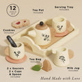 This 12-piece set includes everything your little one needs to host their own delightful tea party. It features beautifully crafted cups and saucers, a charming tea pot, tea bag, a dainty milk jug, and even sugar-coated biscuits for an authentic tea-time experience.