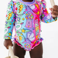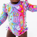 Cosmic Candyland Long Sleeve Ruffle Swimsuit