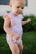 Designed for little movers, Ollie Jay's Emmy Bubble combines comfort and style with its super soft, stretchy fabric that moves with your child. Delightful ruffled details adorn the shoulders and cascade down the back, adding a sweet touch. Plus, adjustable straps ensure a perfect fit as they grow. With a convenient 3-snap closure, diaper changes are quick and easy — making this romper a practical favorite for everyday adventures. Soft, stretchy fabric for all-day comfort Ruffled accents on shoulders and back Adjustable straps to grow with your baby Easy 3-snap diaper closure Care Instructions: Machine wash cold with like colors. Tumble dry low or lay flat to dry for longer wear.