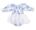 Long Sleeve Smocked Bubble with Tutu - Dream Cottage Floral Blue