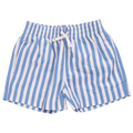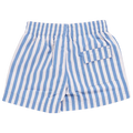 All In For Swim! Our collection classic Boys Swim Trunk hits all the right waterside style notes. Practical features include roomy side pockets and one velcro back pocket. An elasticized waistband adds comfort and easy movement; finished with a faux drawstring-tie closure. Hits above the knee. Available in Blue Stripe, Blue Watercolor Dogs, Green Golf Tournament, Navy Frogs and Bluestone Multi Fishies.